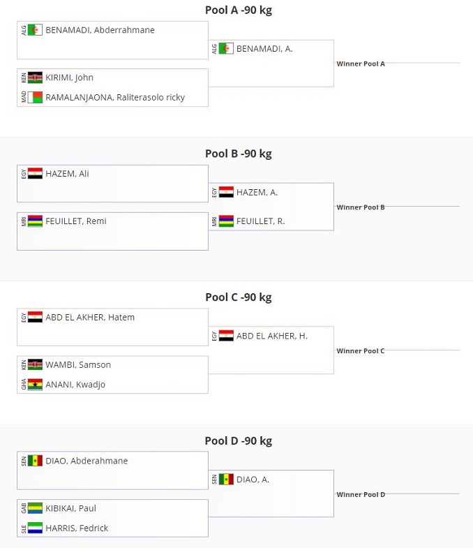 Les Championnats d’Afrique 2020 ont débuté ce Jeudi. BENAMADI Abderrahmane représente l’Algérie dans la catégorie des moins de 90 Kg. Aussi Il rencontrera au second tour le vainqueur du combat entre RAMALANJAONA RALITERASOLO RICKY (Madagascar) et KIRIMI JOHN (KENYA). En effet il est exempté du 1er tour.