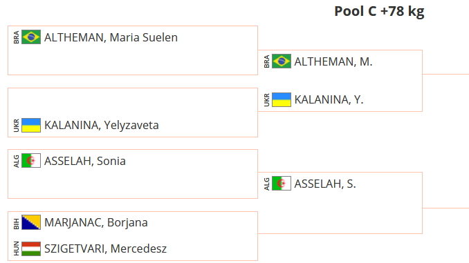 Tirage plus clément pour ASSELAH Sonia qui se trouve dans la poule C. En effet elle est exempt du premier combat et rencontrera au 2ème tour la gagnante du combat qui oppose la Hongroise SZIGETVARI Mercedesz et la Bosnienne MARJANAC Borjana.